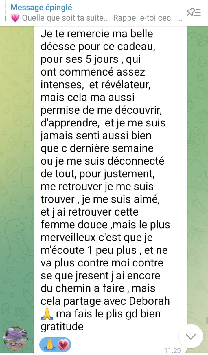 Pendant 5 jours, tu vas descendre de la tête vers le cœur et le corps.