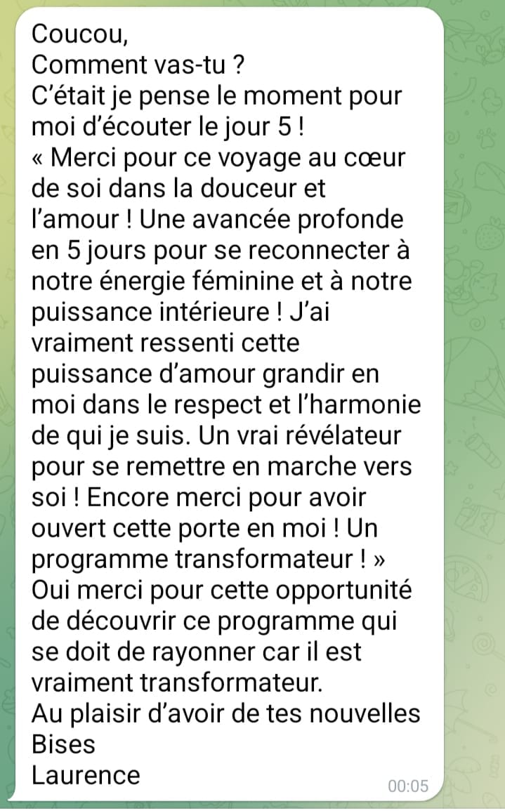 Reconnecte-toi à ton essence, à ton énergie féminine sacrée et à l’amour que tu es déjà. Ce premier pas te prépare à incarner pleinement ta puissance féminine.